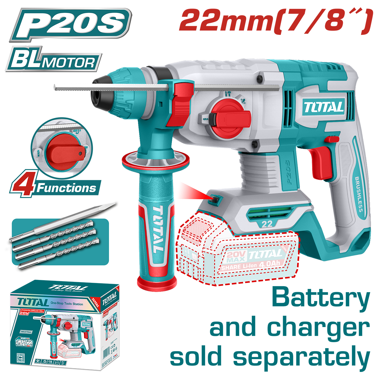 Ciocan rotopercutor Total Li-Ion 20V, 2.0J, motor fara perii, 5400 bpm, 1100 rpm
