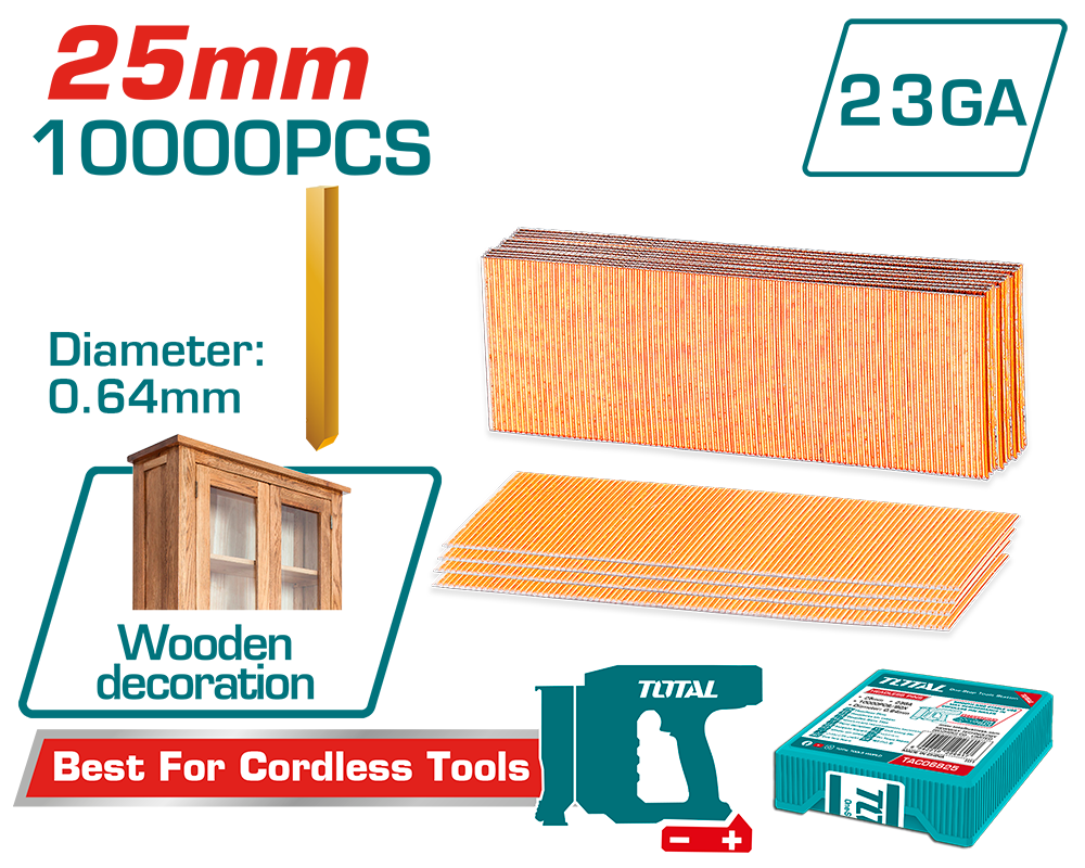 Cuie TOTAL 25 mm GA23, 0.64 mm, pentru pistol batut cuie TCBNLI3606 - Descriere
