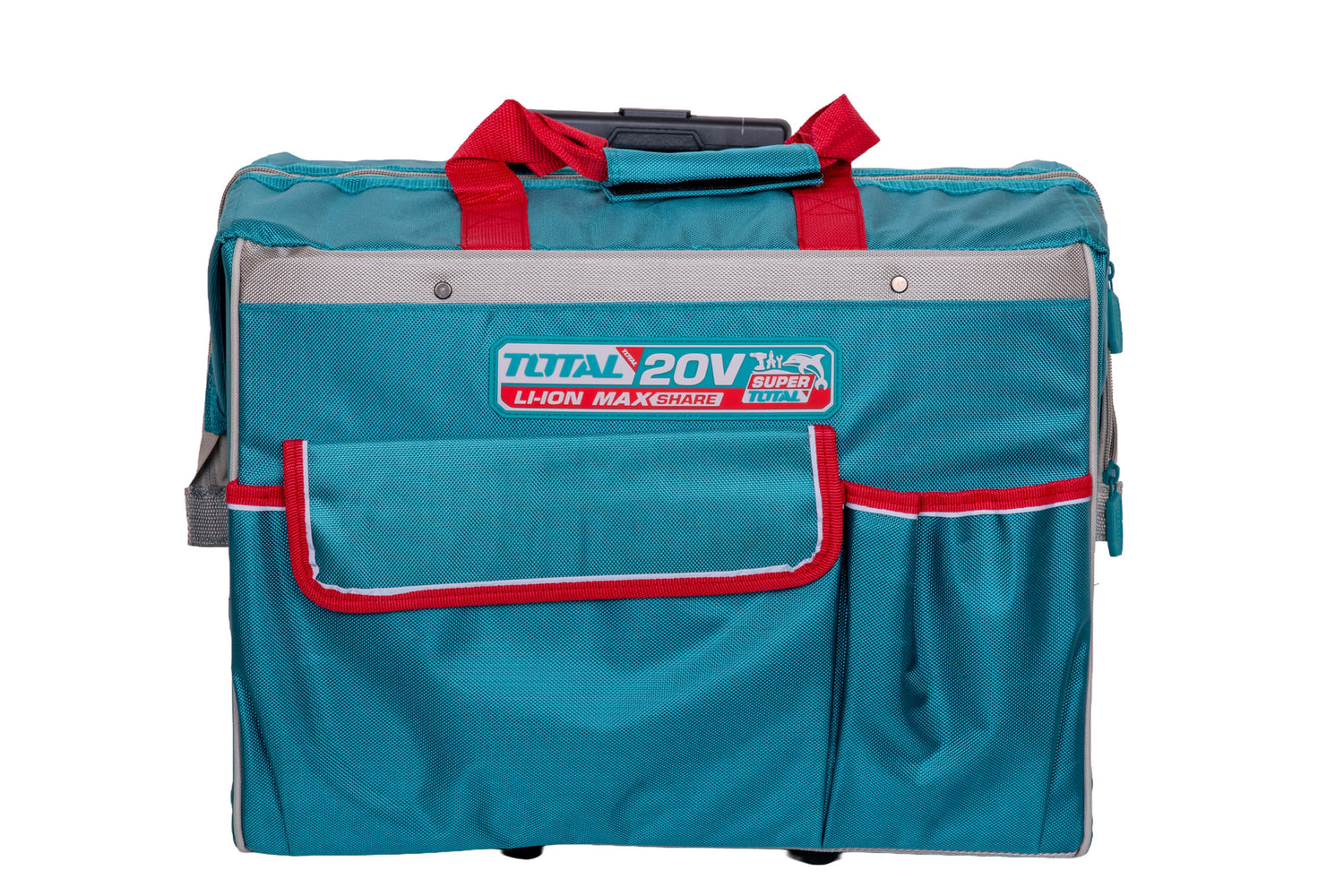 Kit Combo TOTAL 20V – Bormasina cu percutie, Masina de insurubat cu impact, Polizor unghiular, Ciocan rotopercutor, Fierastrau circular, Suflanta, Slefuitor, Pistol cu aer cald, Lampa de lucru pe acumulator - include 2 baterii, incarcator si accesorii - Descriere