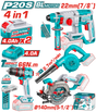 Kit combo TOTAL 20V cu Masina de gaurit, Ciocan rotopercutor, Fierastrau circular si Suflanta (INCLUDE 2 ACUMULATORI , 1 INCARCATOR) - Descriere