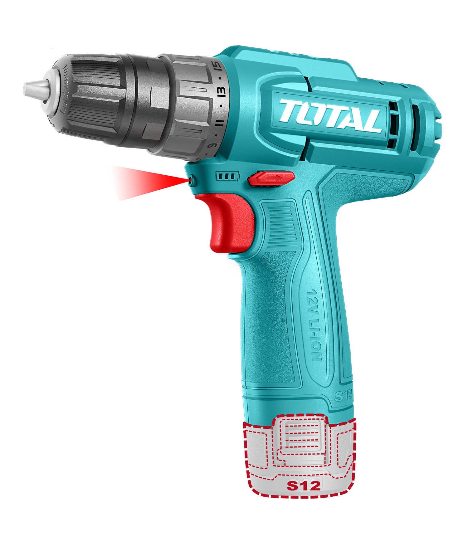 Masina de gaurit TOTAL 12V este destinata lucrarilor usoare de bricolaj si intretinere. Este compacta, usor de manevrat si potrivita pentru gaurire si insurubare in lemn, metal subtire sau plastic. Functioneaza pe acumulator Li-Ion si este echipata cu iluminare LED pentru lucru in zone mai slab luminate.