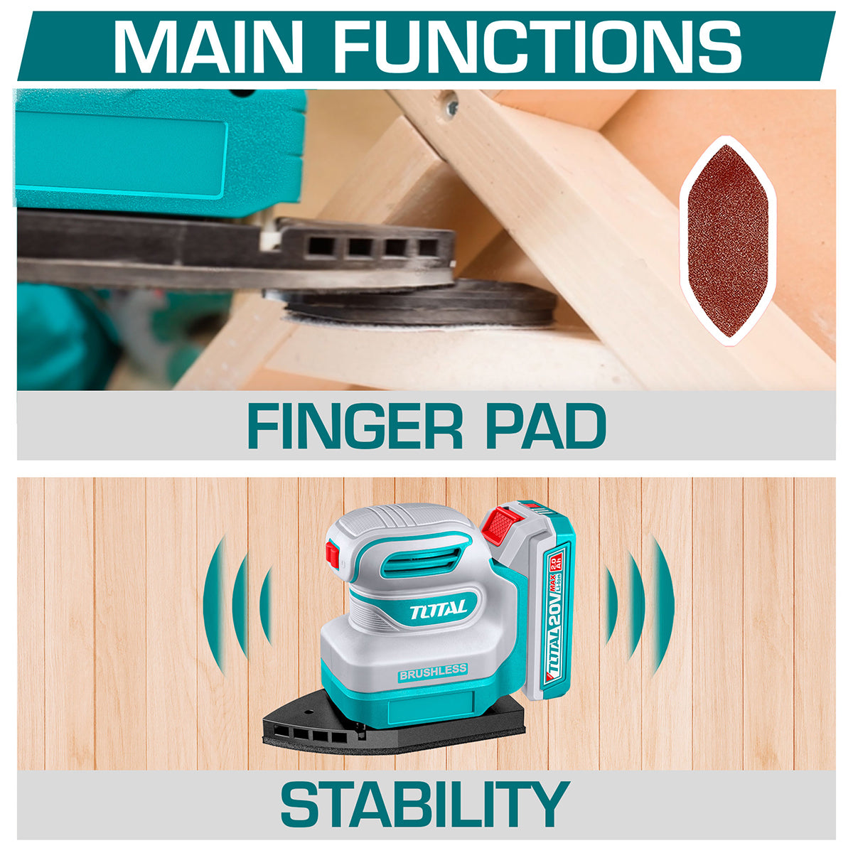 Masina de slefuit cu talpa delta TOTAL 20V este conceputa pentru lucrari de finisare si slefuire in zone greu accesibile, colturi si margini. Designul compact si motorul fara perii asigura control bun, functionare constanta si o durata de utilizare indelungata. Este potrivita pentru lemn, vopsea, lac sau alte suprafete similare.