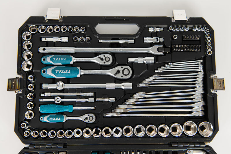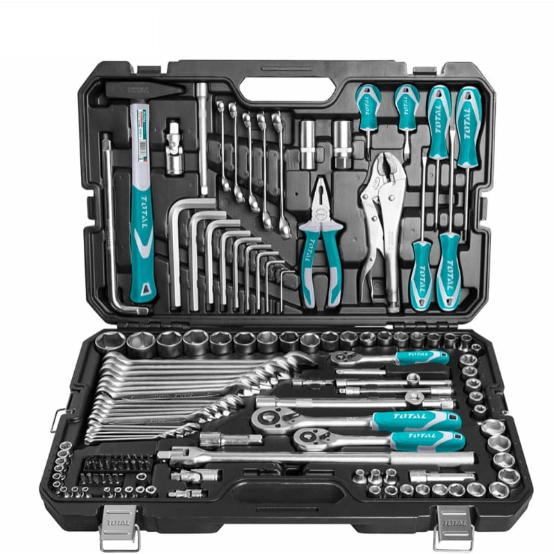 Trusa de scule TOTAL Industrial – 142 piese este un set complet si bine organizat, potrivit pentru lucrari de mecanica, reparatii si intretinere. Include chei tubulare, chei fixe, biti, surubelnite, clesti si alte accesorii utile, toate livrate intr-o trusa rezistenta.