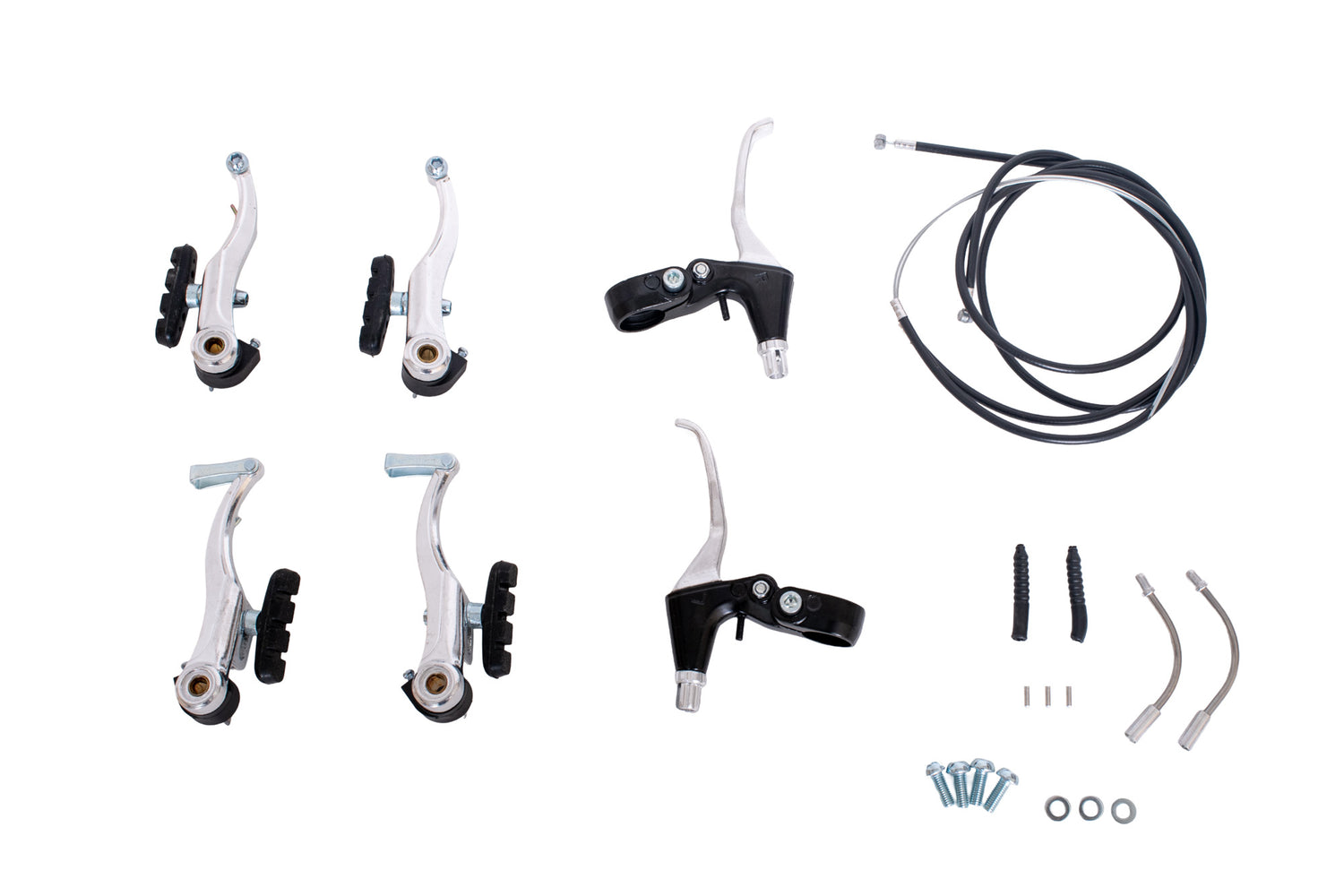 Set complet frana, V-Brake, cu manete din aluminiu, negru/argintiu,