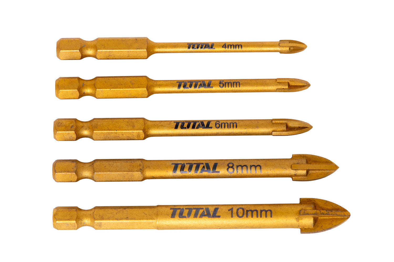 Set de 5 burghie special concepute pentru perforarea sticlei. Include dimensiuni variate pentru utilizare in diverse aplicatii. Ambalate in cutie de plastic pentru depozitare sigura.
