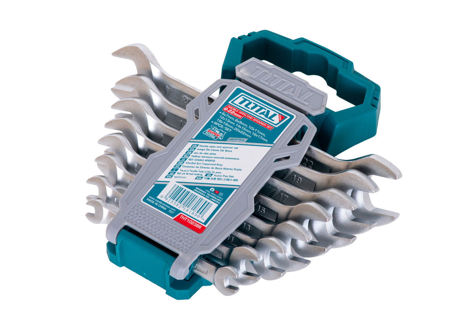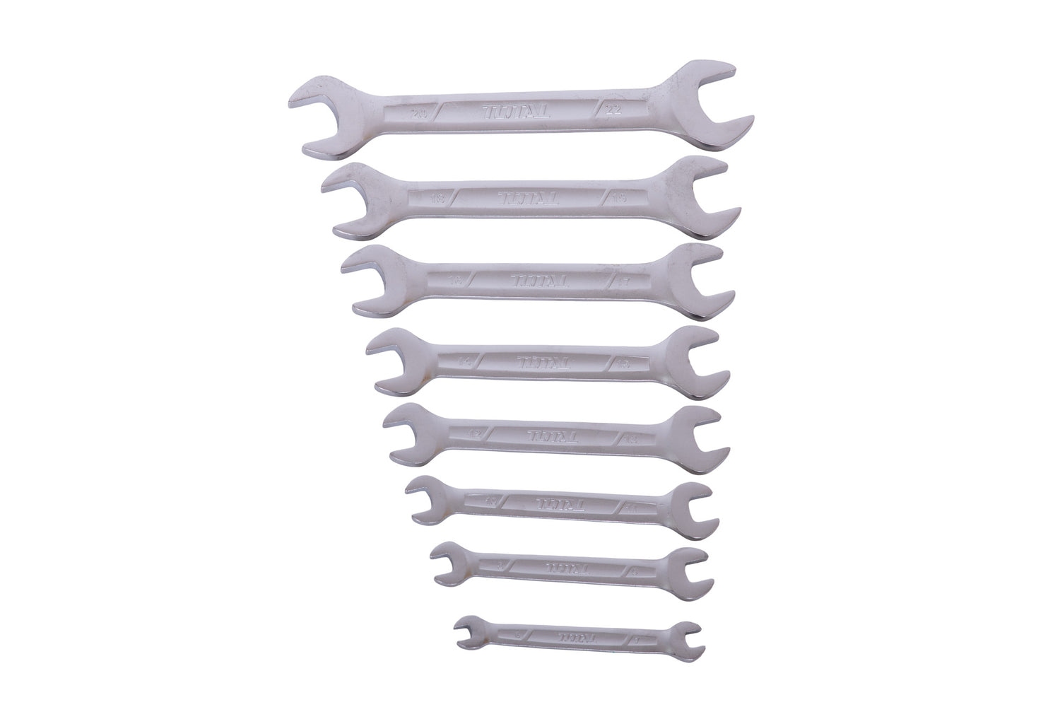 Set de 8 chei fixe TOTAL Industrial, potrivit pentru lucrari de strangere si desfacere in aplicatii generale. Fiecare cheie are doua capete cu dimensiuni diferite pentru o utilizare eficienta.
